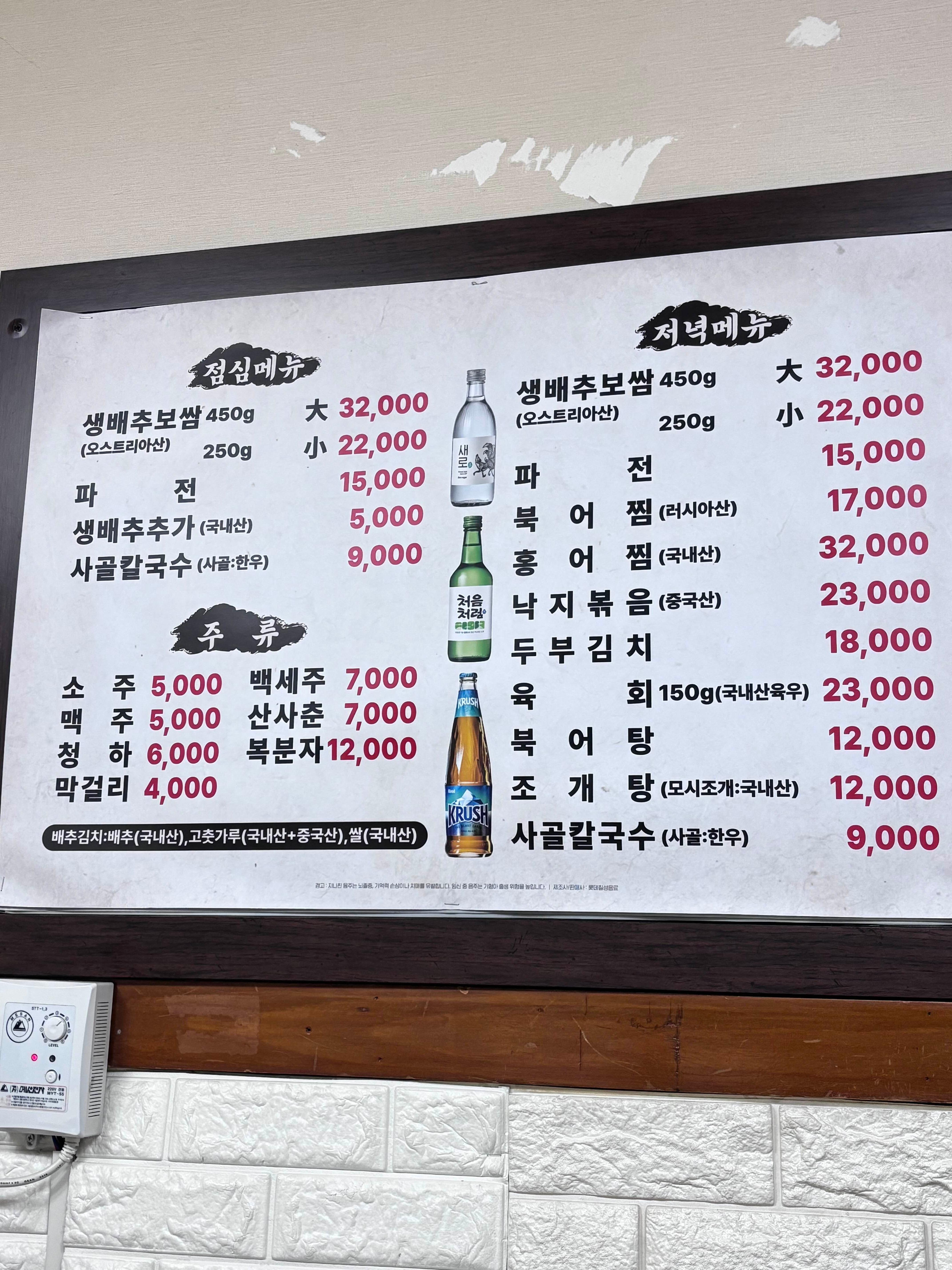 자리에 앉자마자 미리 세팅되어 있는 반찬들이 눈에 들어왔습니다. 종류는 많지 않지만 정갈하게 준비되어 있어서 보기에도 좋고, 바로 먹을 수 있어 편했습니다. 저희는 생배추보쌈을 주문했는데요, 곧바로 싱싱한 생배추와 함께 수육이 나왔습니다.