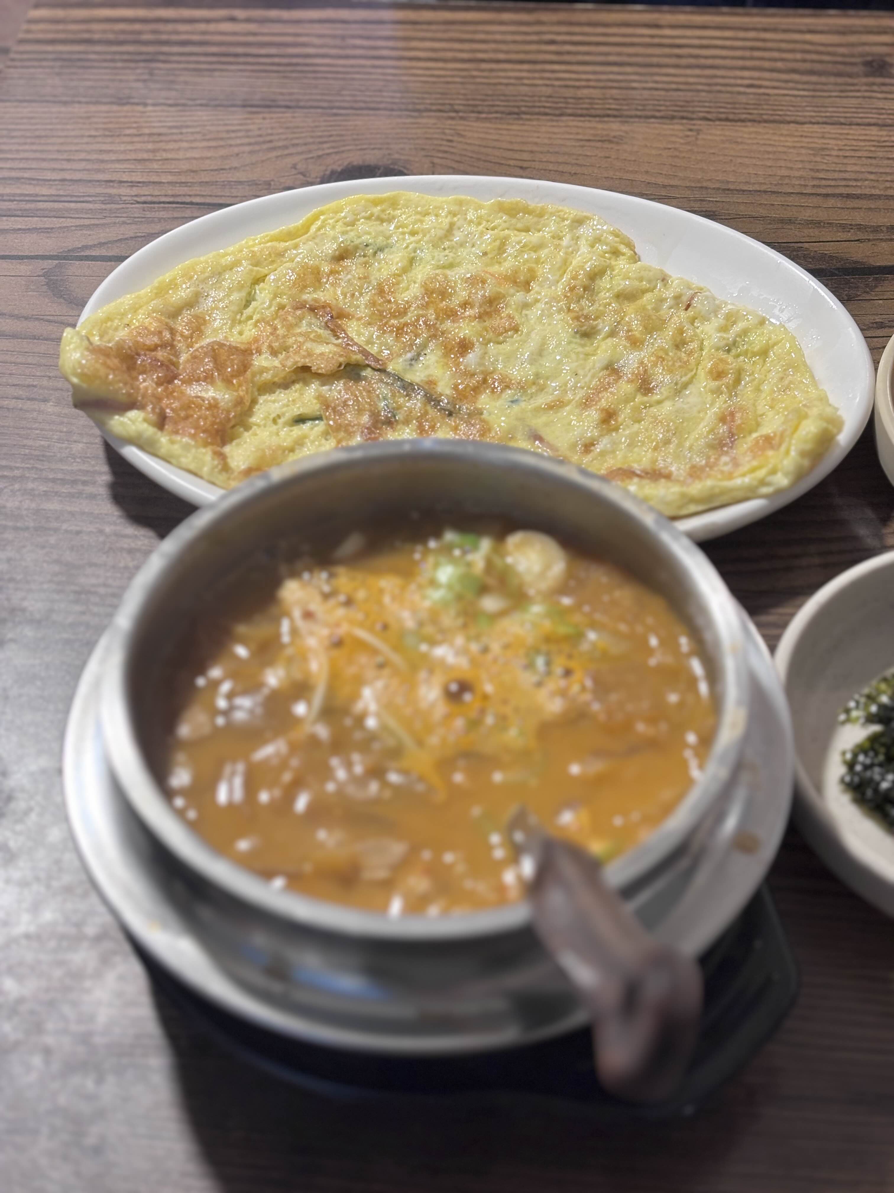 이번에 주문한 메뉴는 청국장 정식 2인분과 계란부침.